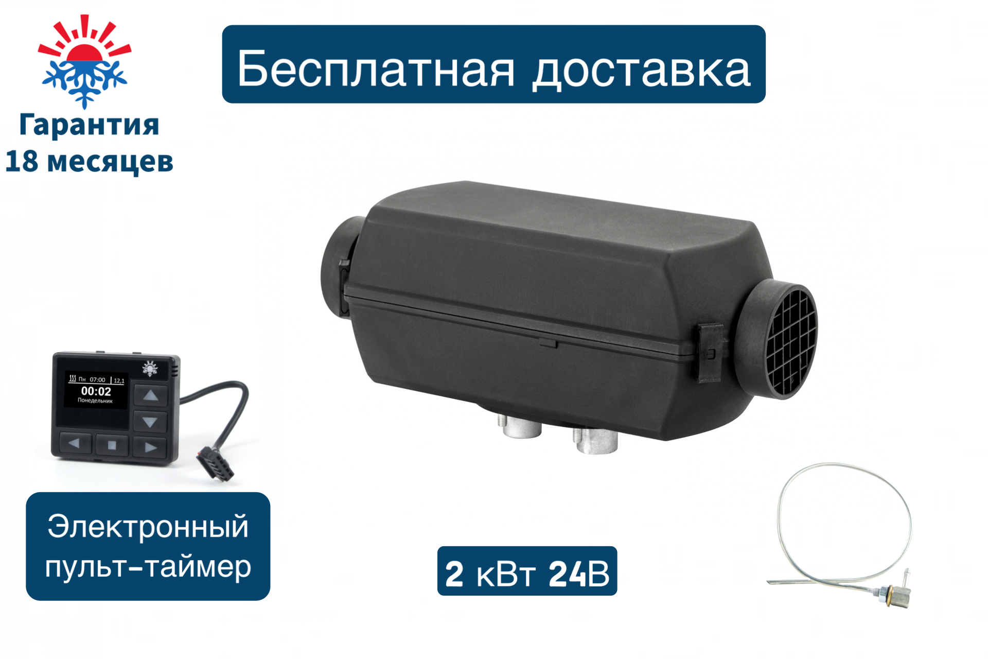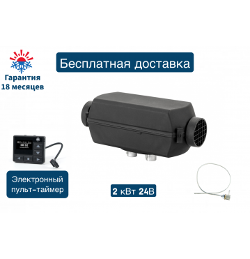Отопитель воздушный дизельный 2Д-24В-S (2 киловатта) Монтажный комплект с топливозаборником / Электронный пульт